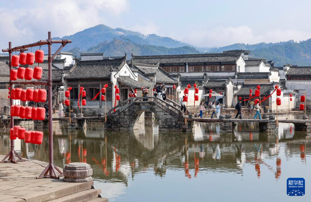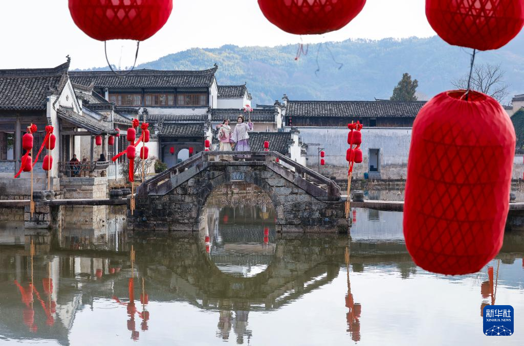 2月14日,游客在安徽省黃山市徽州區(qū)呈坎古村游玩。新華社發(fā)(施亞磊 攝)