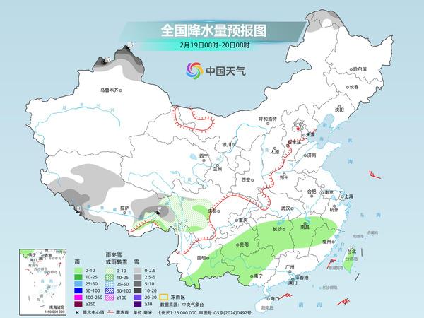 明天,新疆南疆盆地、西藏西部和東南部、青海西部、川西高原北部等地部分地區(qū)有小到中雪或雨夾雪。江南西部、西南地區(qū)東部、華南北部和西部、臺灣島等地部分地區(qū)有小到中雨。