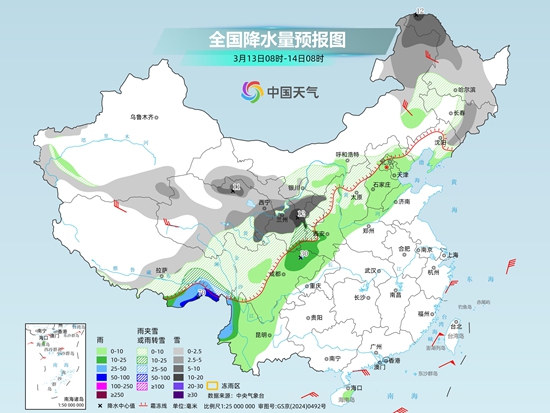 中國天氣網(wǎng)提醒,此次降水過程影響范圍廣,多地雨雪天氣較強,公眾請及時查看天氣預警預報信息,做好防范措施,出行注意交通安全。