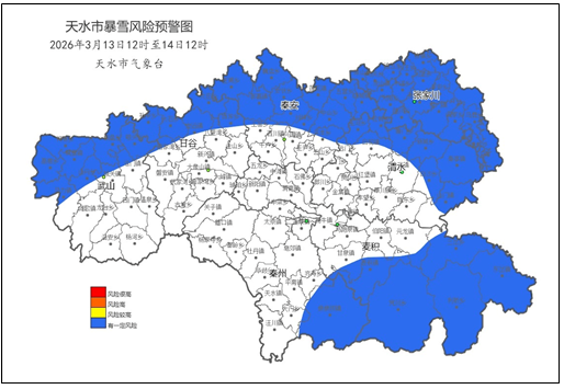 天水市氣象局2026年03月13日11時30分發(fā)布暴雪藍(lán)色風(fēng)險預(yù)警: