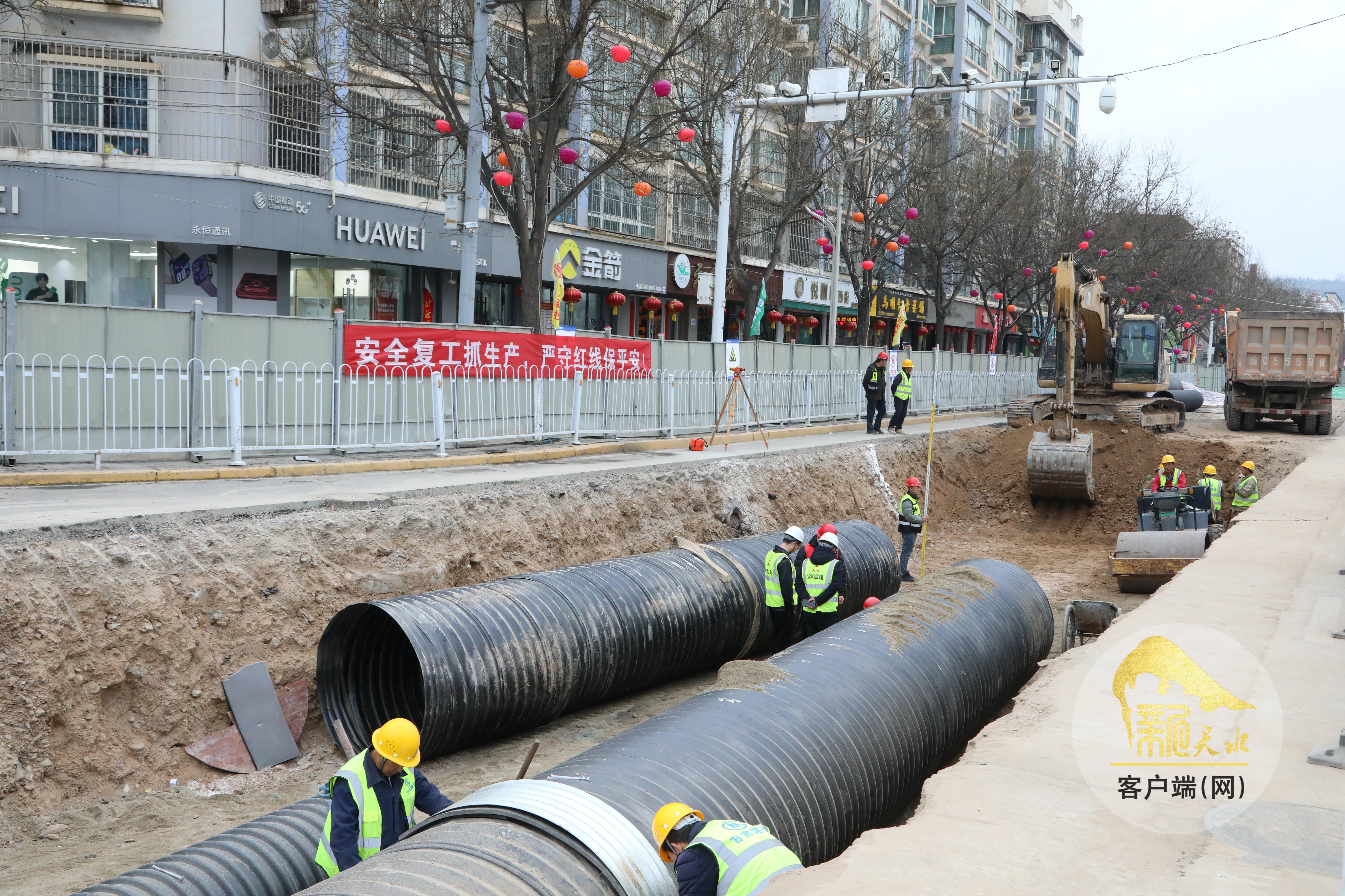 近日,在秦安縣城區(qū)供排水管網提升改造工程建設現場,工人們正在加速施工。該項目是秦安縣完善基礎設施、提升城市承載力的重點民生工程,建成后將顯著提升城市排水系統效率,有效緩解城市內澇問題,進一步改善居民生活環(huán)境,提升群眾幸福指數。(天水融媒記者 馬放 攝)