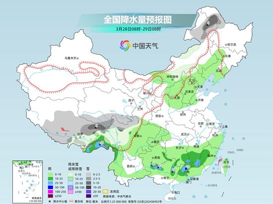 具體來看,中央氣象臺預(yù)計(jì),今天,內(nèi)蒙古東北部、黑龍江西北部、西藏中南部和東部、甘肅河西、川西高原中南部等地部分地區(qū)有小到中雪或雨夾雪,其中,西藏南部、甘肅河西等地局地有大雪。西藏東南部、重慶西部、貴州東部和南部、湖南西部和南部、江西南部、廣西北部、廣東北部、福建南部等地部分地區(qū)有中到大雨,其中,湖南西南部、廣西東北部、江西南部等地局地有暴雨。