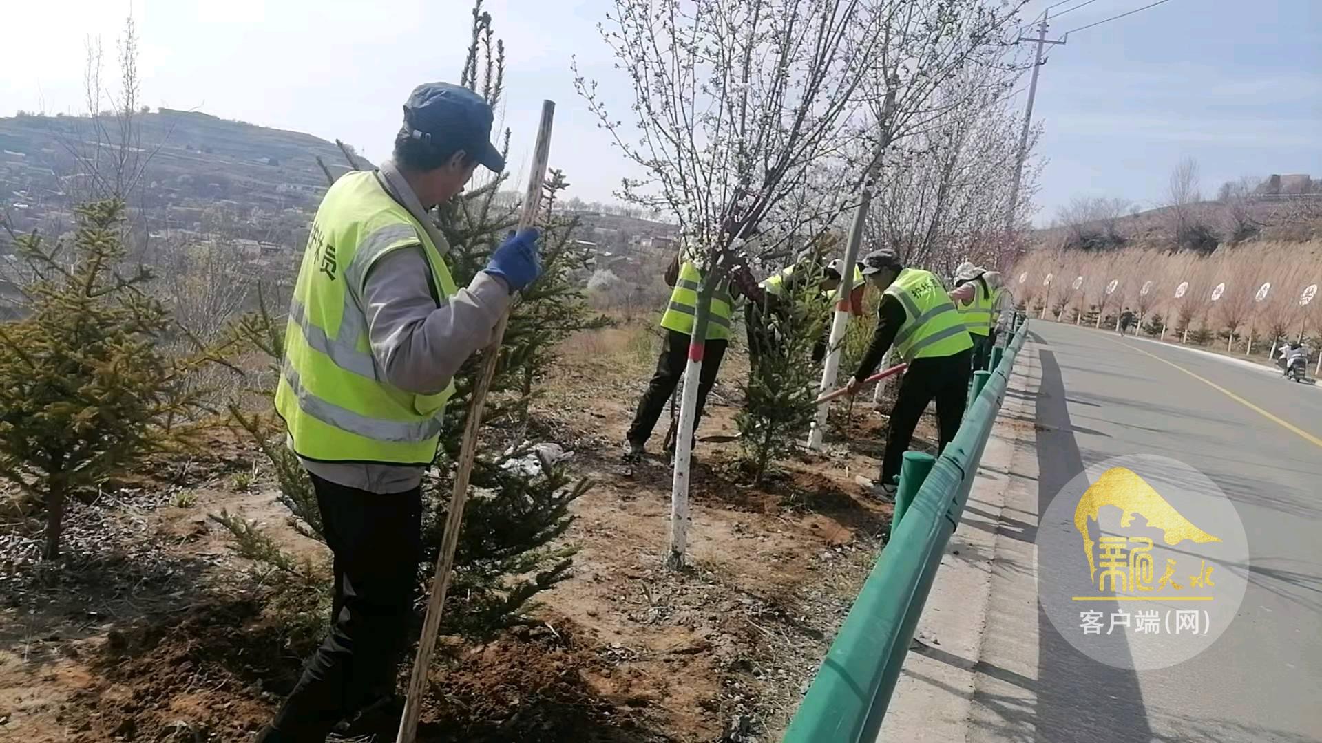 新天水訊 春回大地,萬物復(fù)蘇。今年春季墑情普遍較好,秦安縣千戶鎮(zhèn)搶抓有利時(shí)機(jī),全面啟動(dòng)行道樹補(bǔ)植補(bǔ)栽工作。連日來,在涇甘公路沿線及六圖村、劉莊村、王嶺村、川珠村等村主干道上,到處是一派繁忙景象,鎮(zhèn)村干部、護(hù)林員和公益性崗位人員正揮鍬鏟土、栽植新綠,為群眾出行打造“暢、安、舒、美”的路域環(huán)境。