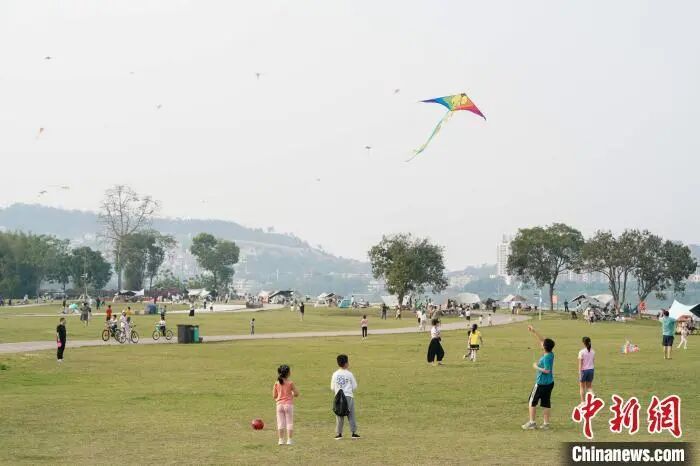 資料圖:正值清明節(jié)假期,廣西南寧不少民眾外出踏青游玩,享受假日。圖為兒童在南寧市龜山濱江公園放風(fēng)箏。 陳冠言 攝