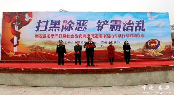 • 11月20日,秦安縣冬季嚴(yán)打暨社會(huì)治安突出問題集中整治專項(xiàng)行動(dòng)啟動(dòng)儀式在興國鎮(zhèn)文化廣場(chǎng)舉行。[查看詳情]