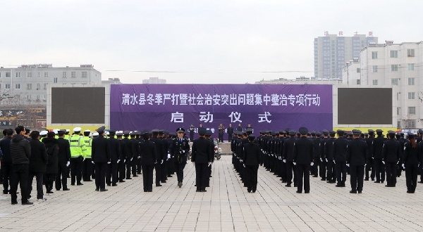 • 11月20日,清水縣在軒轅廣場(chǎng)舉行全縣冬季嚴(yán)打暨社會(huì)治安突出問題集中整治行動(dòng)啟動(dòng)儀式。[查看詳情]