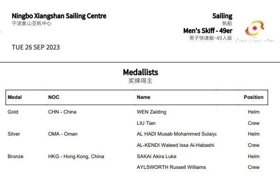 中國隊(duì)奪得杭州亞運(yùn)會(huì)混合雙體船-諾卡拉17級(jí)金牌