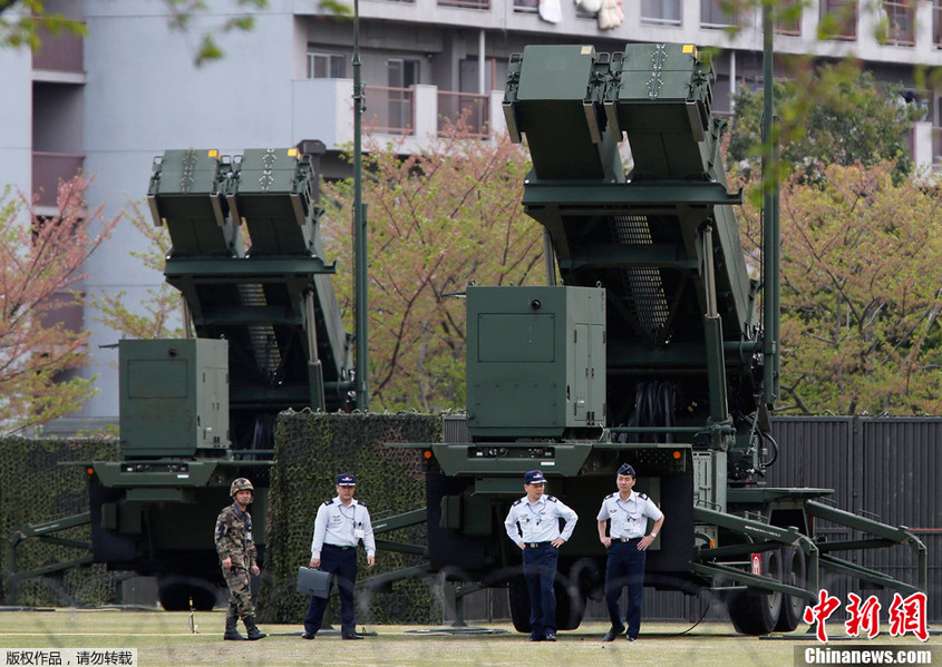當?shù)貢r間2013年4月9日,日本東京,日本自衛(wèi)隊士兵在“愛國者3”導(dǎo)彈附近走動。據(jù)報道,日本航空自衛(wèi)隊將“愛國者3”型地對空攔截導(dǎo)彈(PAC3)部署到了東京市市谷日防衛(wèi)省駐地內(nèi),為朝鮮發(fā)射導(dǎo)彈做好攔截準備。