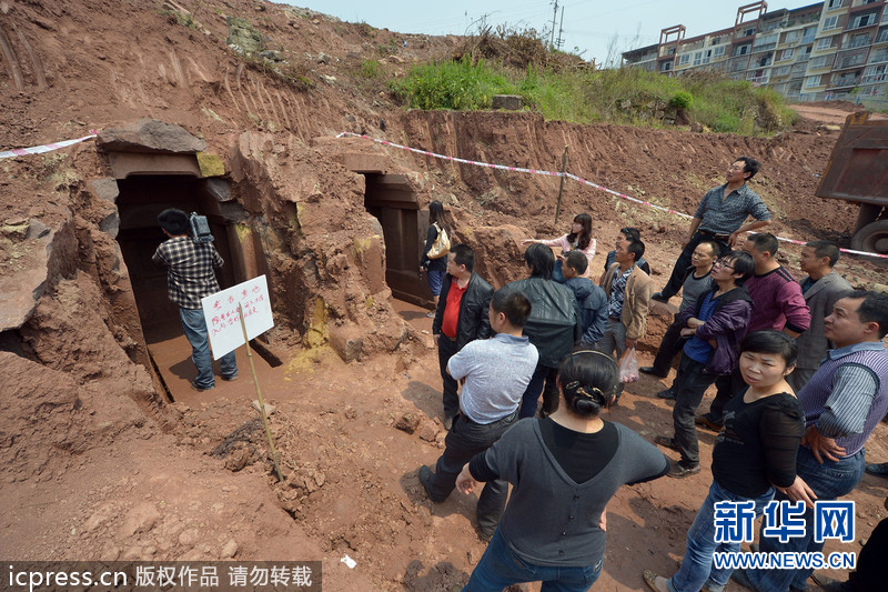 2013年4月13日,重慶北碚區(qū)澄江鎮(zhèn)一工地挖出兩座連體古墓,墓室雕刻精美,附近村民聞?dòng)?,紛紛趕來(lái)看稀奇,猜測(cè)這是哪個(gè)年代的墓,墓主是誰(shuí)?北碚區(qū)文管所通過(guò)現(xiàn)場(chǎng)勘察,初步斷定為宋朝墓葬,距今近千年。