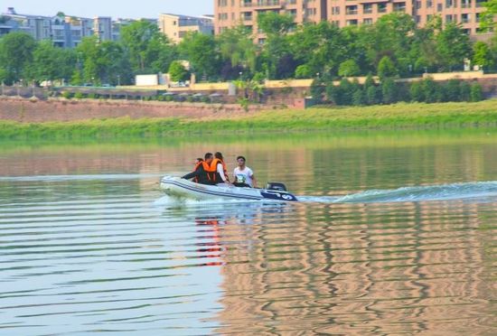 談起買沖鋒艇的緣由,小彭自嘲說(shuō),他是“沒(méi)有車的窮二代”,但是他有駕照會(huì)開(kāi)車,也偶爾借朋友的車開(kāi),有時(shí)打出租車出行,“特別是早晚高峰的時(shí)候,路上那個(gè)堵啊,所以我一直沒(méi)有買車?!毕氲綐?lè)山城三江環(huán)繞,水域?qū)拸V,他便產(chǎn)生了買沖鋒艇的想法。