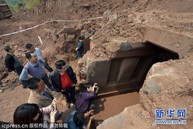 | 重慶小區(qū)建房 挖出兩座連體古墓 | |