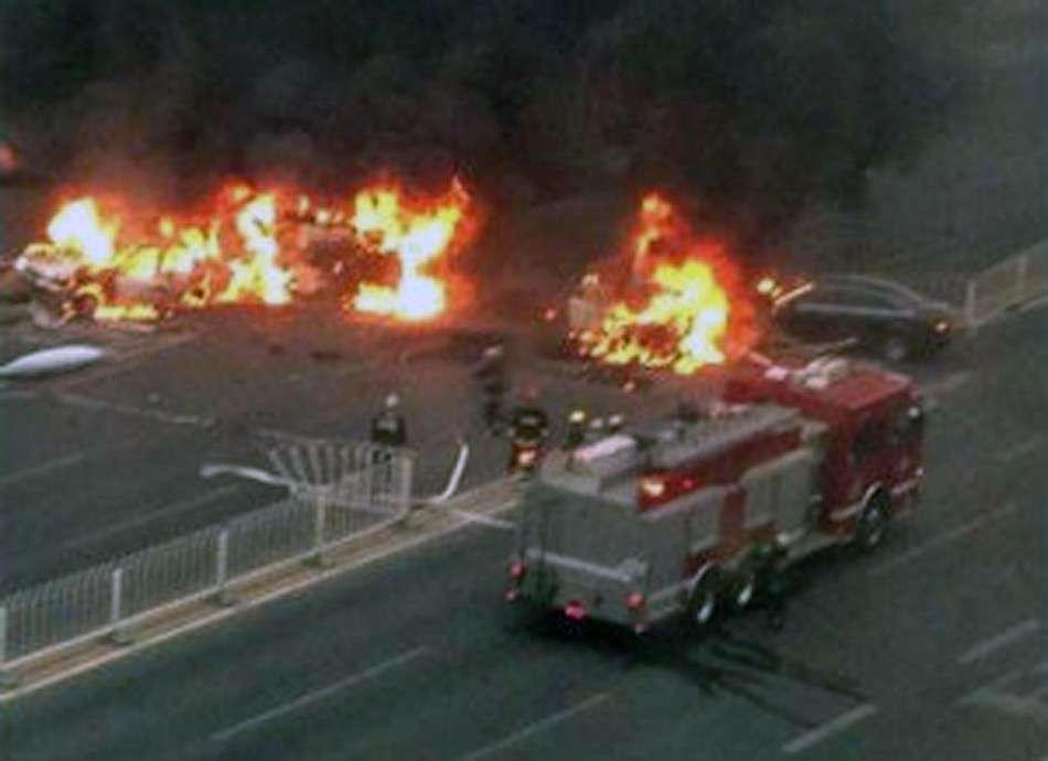 北京4輛轎車相撞引大火
