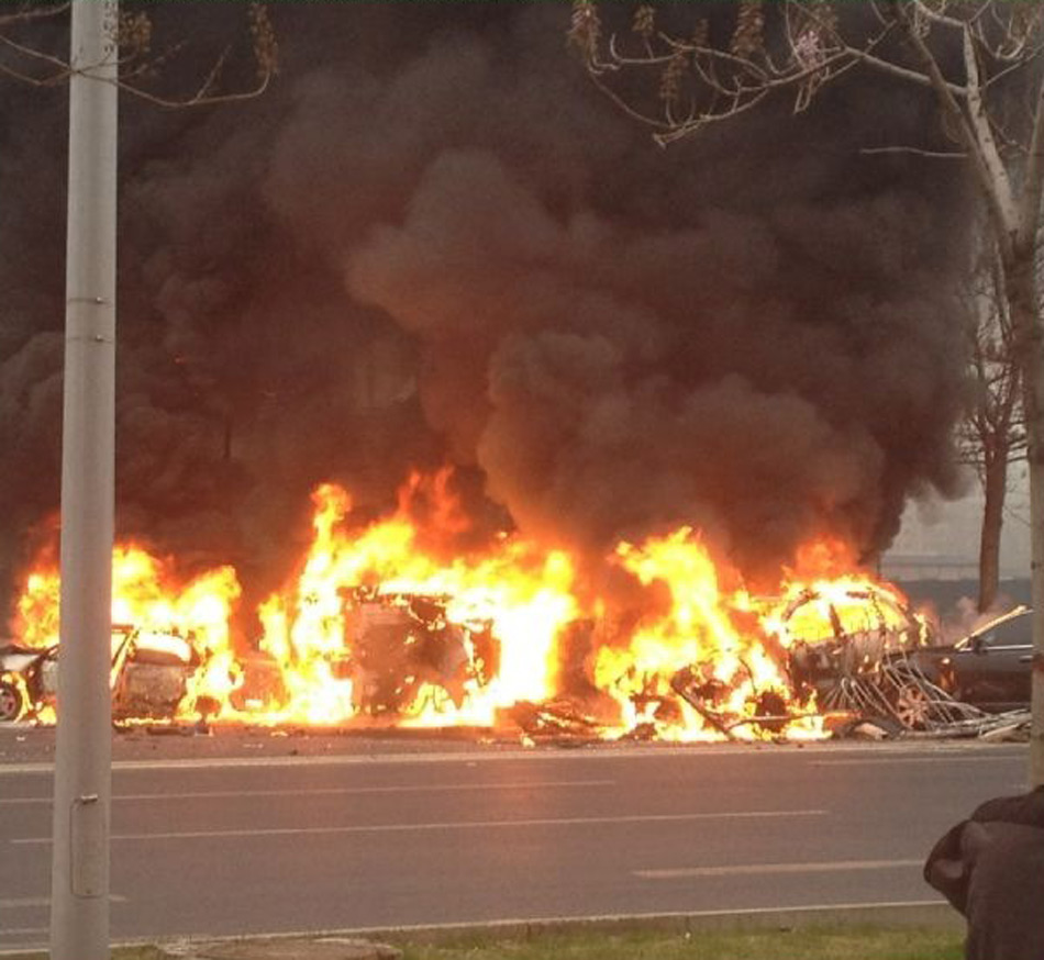 北京4輛轎車(chē)相撞引大火