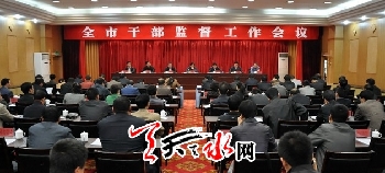 ??? 天天天水網(wǎng)訊【記者 漆艷】 全市干部監(jiān)督工作會議暨組織系統(tǒng)“聯(lián)系群眾轉(zhuǎn)作風(fēng)、公道正派樹形象”活動推進會,4月24日在天水迎賓館召開。市委常委、組織部長王光慶出席會議。