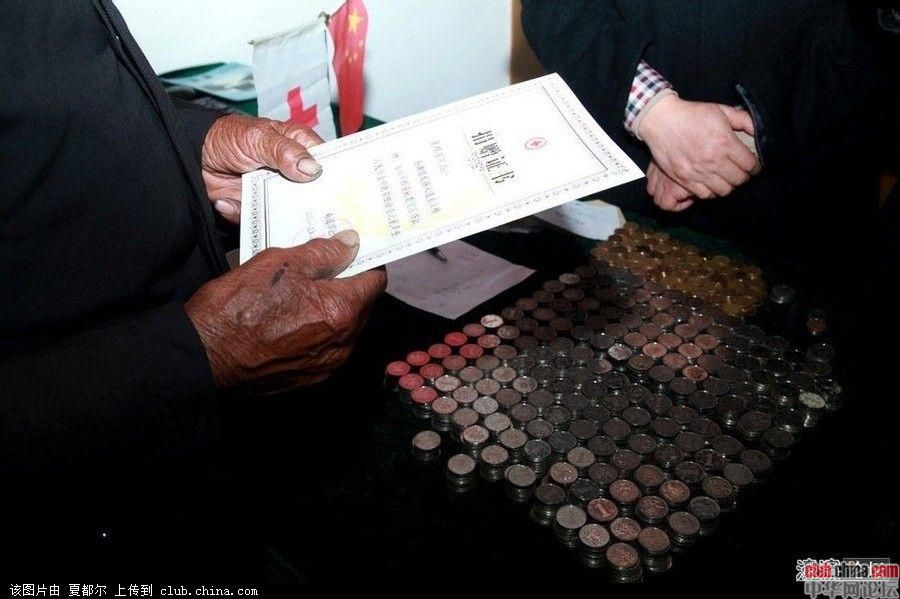 磨刀老人將兩千硬幣捐給災(zāi)區(qū)
