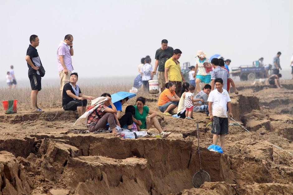 三門峽大壩調(diào)水調(diào)沙 千人瘋狂撈魚