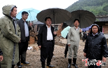 ???中共天水市委常委、秦州區(qū)委書記張明泰,中共天水市委常委、秘書長蔣曉強(qiáng)一同察看災(zāi)情。