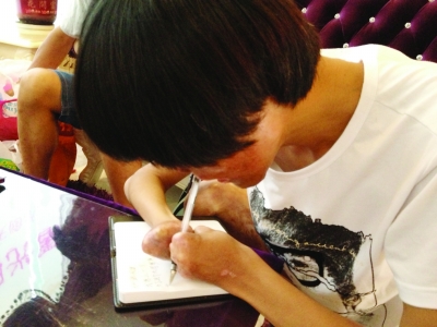 ????去年,韓明建的高考成績是507分,當(dāng)時的二本分數(shù)線是478分,他的第一志愿填了外省的兩所大學(xué),分別是新疆的某大學(xué)和山西太原某醫(yī)學(xué)院,雖然他的分數(shù)遠遠超過了這兩所大學(xué)的錄取分數(shù)線,但不知道什么原因,他們沒有收到錄取通知書,在網(wǎng)上也沒有查到相關(guān)信息。韓明建的父親韓永林告訴揚子晚報記者,去年的錄取工作接近尾聲的時候,兒子還是沒有任何消息,他趕緊打電話到安徽省招生辦,招生辦工作人員告訴他,韓明建被拒收。“具體什么原因,招生辦也沒有說清楚.可能因為準考證上有兒子的照片,學(xué)校認為太丑,才拒收?!表n永林說,當(dāng)時,他也打電話到新疆這所大學(xué),對方也未說明原因,就是說不收。而他也沒有繼續(xù)去咨詢山西這家院校。同時,因為兒子的高考成績也不是特別理想,他們也沒有一直追問下去,而是讓兒子繼續(xù)選擇復(fù)讀一年。韓明建今年的高考成績是499分,當(dāng)?shù)匾槐痉謹?shù)線是490分?!拔蚁雽W(xué)中醫(yī),學(xué)成之后,救治更多的人,但我長成這樣,有學(xué)校會錄取我嗎?我的大學(xué)夢能實現(xiàn)嗎?”因為被燒傷,記者無法讀出他的表情,但他語氣始終很平靜,韓明建說得最多的就是希望社會能給他一次機會,讓他去讀大學(xué)。