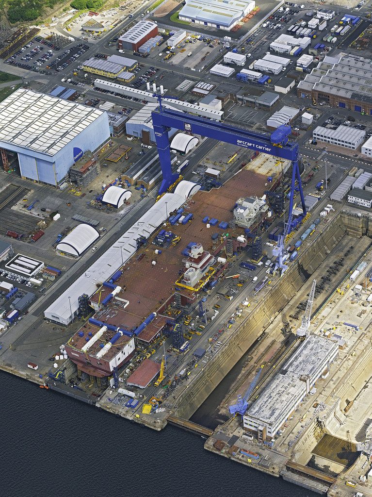 鳥瞰英國(guó)新航母:雙艦島裝好主體輪廓成形