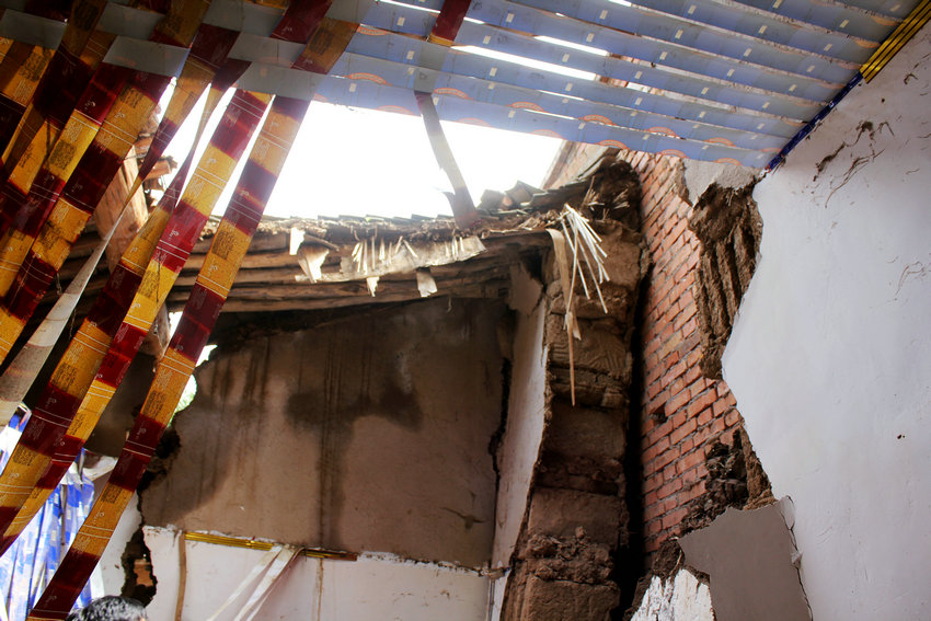 ??? 蔡建明一行先后深入木河鄉(xiāng)上渠村、高山村及莊張公路張家川段察看受災(zāi)情況。記者一路跟隨,不時可見滑坡的山體、倒塌的房屋、坍塌受損的路面、裂開的墻體……
