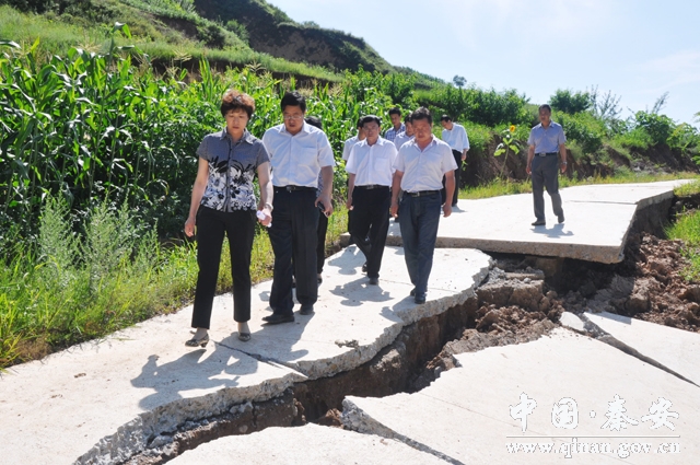 7.21暴雨和7.22地震使秦安縣受災(zāi)嚴(yán)重。7月23日,天水市副市長(zhǎng)溫利平深入秦安縣受災(zāi)最嚴(yán)重的王尹鄉(xiāng)、云山鄉(xiāng)等鄉(xiāng)鎮(zhèn),查看了解群眾住房、道路、學(xué)校等受災(zāi)情況,指導(dǎo)抗災(zāi)救災(zāi)工作。市政府副秘書長(zhǎng)董小明陪同。