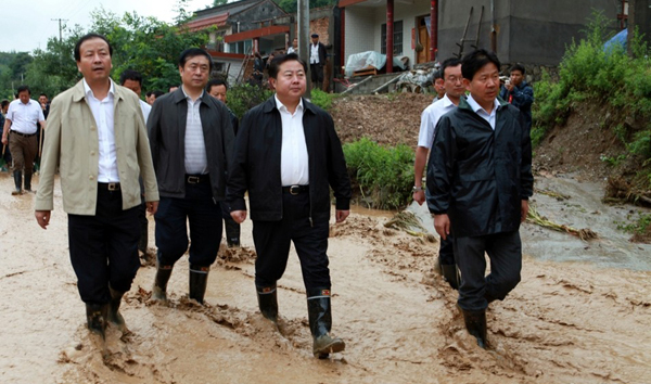 (在秦州區(qū)娘娘壩鎮(zhèn)查看災(zāi)情)