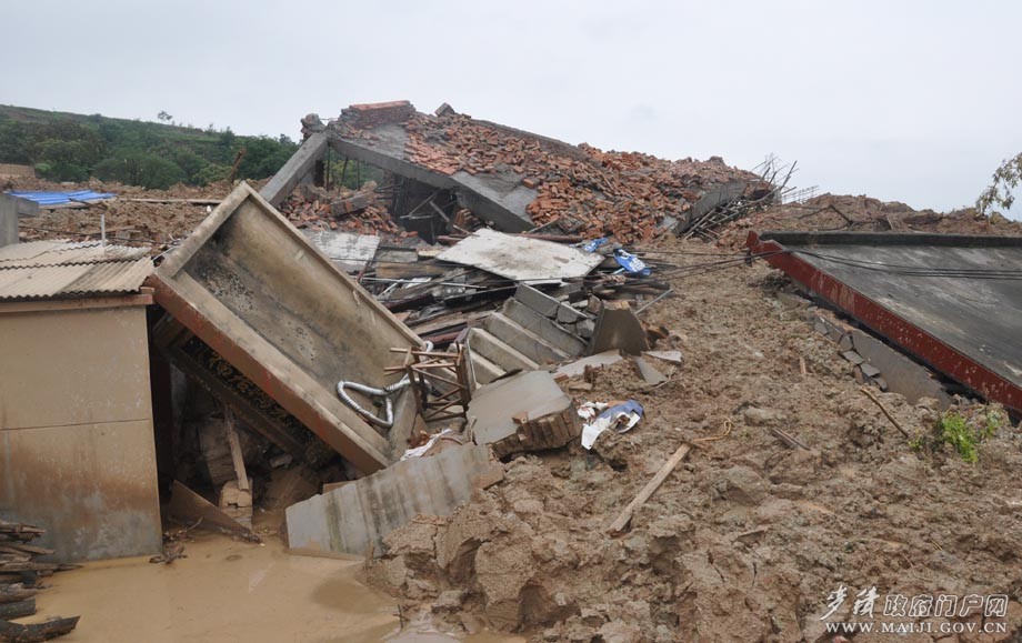 ??? 7月21日,城區(qū)降水量為114.3毫米。特別是多次暴雨致使甘泉鎮(zhèn)高家莊9戶54間、峽門5戶32間農(nóng)宅被洪流直接沖走;馬跑泉鎮(zhèn)大溝村發(fā)生近20多萬(wàn)方的特大泥石流災(zāi)害,將9戶137間村民房屋和新建的村委會(huì)3層36間辦公樓,原村委會(huì)8間平房及3間戲樓全部沖毀掩埋,大溝、慕灘村405戶1700多人的住房和村小學(xué)受到嚴(yán)重威脅;胡王村后坪自然村崖體垮塌7處,塌方200多方,直接摧毀村民房屋2戶8間,嚴(yán)重受損27戶82間,196戶896人安全受到威脅。社棠鎮(zhèn)石嶺村、半山村、柏林村和麥積鎮(zhèn)陳家山、馮王、灘子、紅崖、賈河、后川、永慶等村出現(xiàn)嚴(yán)重滑坡,直接威脅相關(guān)村莊安全。通往麥積山景區(qū)的道路塌陷嚴(yán)重,局部區(qū)域反復(fù)發(fā)生泥石流、塌方,交通多次阻斷,致使麥積山景區(qū)暫停游覽。