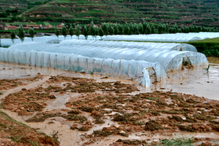 ▲持續(xù)強(qiáng)降雨導(dǎo)致日光溫室倒塌