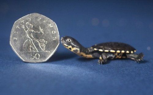剛出生一個(gè)星期的羅蒂島蛇頸龜,其體型與硬幣大小相當(dāng)(網(wǎng)絡(luò)圖片)