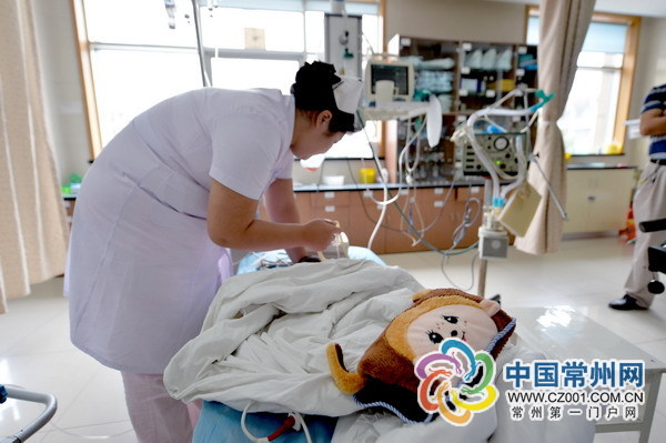 ????走進搶救室,萍萍側著身子躺在搶救床上,小臉一片青灰。醫(yī)護人員正在進行急救。常州市兒童醫(yī)院的解醫(yī)生從市里趕來,解醫(yī)生說,現在萍萍已經不能自主呼吸,僅靠呼吸機維持生命。