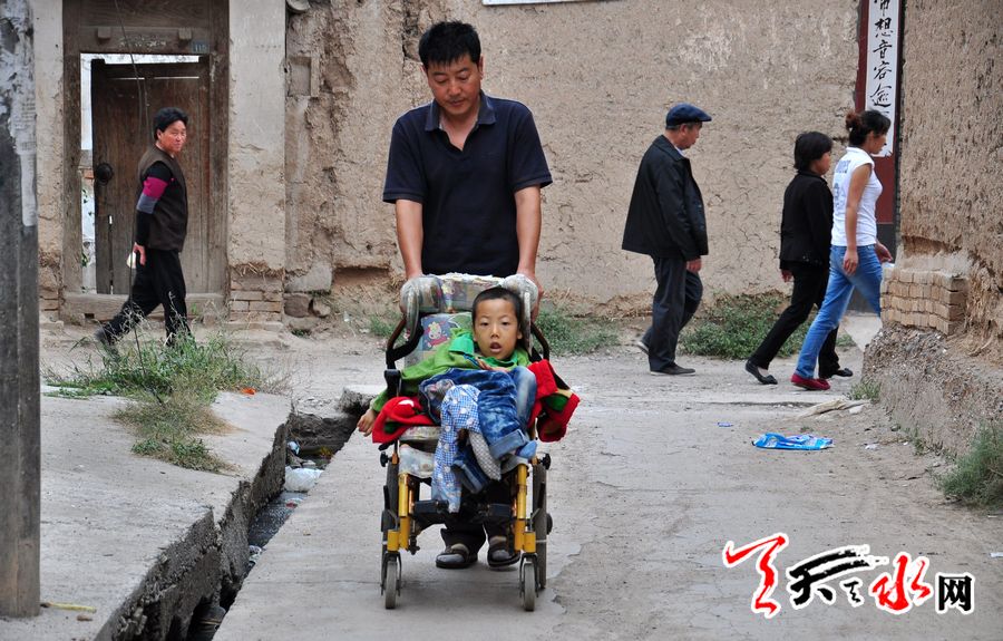 李永生每天都要推著兒子在巷道散步,在他邁出的每一步都深深地留下了坎坷的生命印記……