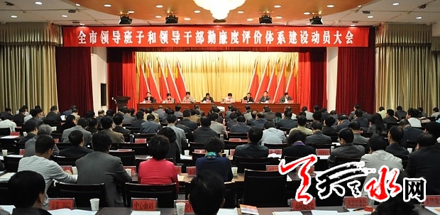 ??? 天天天水網(wǎng)訊(記者 漆艷)9月24日,天水市召開領(lǐng)導(dǎo)班子和領(lǐng)導(dǎo)干部勤廉評(píng)價(jià)體系建設(shè)工作動(dòng)員大會(huì),對(duì)天水市開展領(lǐng)導(dǎo)班子及領(lǐng)導(dǎo)干部勤廉度評(píng)價(jià)建設(shè)工作進(jìn)行動(dòng)員部署。會(huì)議要求,各級(jí)領(lǐng)導(dǎo)班子和領(lǐng)導(dǎo)干部要通過開展勤廉度評(píng)價(jià)體系建設(shè)工作,努力營(yíng)造干部清正、政府清廉、政治清明的從政環(huán)境,為全市經(jīng)濟(jì)社會(huì)轉(zhuǎn)型跨越發(fā)展提供有力的紀(jì)律保證。