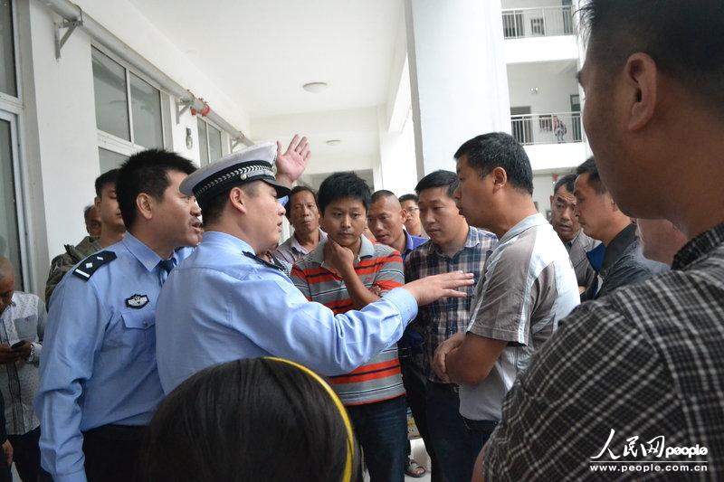 ????9月22日中午,家長(zhǎng)把被趕出教室的小學(xué)生帶走后,梧桐街派出所民警欲把現(xiàn)場(chǎng)的幾名民工帶回所里詢問情況,遭到民工的拒絕,其中有人與民警發(fā)生口角。