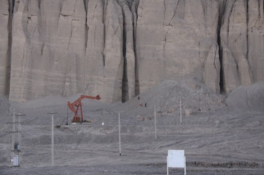????這面懸崖的中間兩條裂縫即是被困男子被困處。 艾則孜江 攝