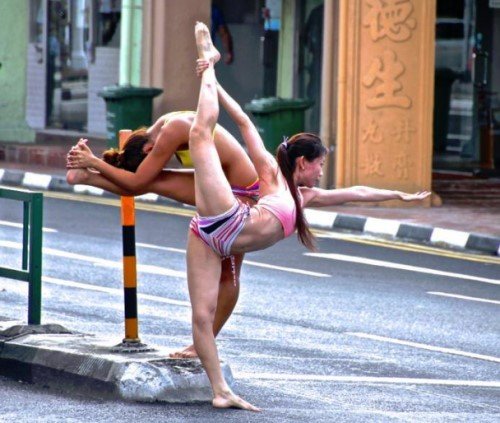 ????據(jù)東森新聞網(wǎng)報(bào)道,新加坡兩名穿著性感的女子,最近頻頻出現(xiàn)在公共場(chǎng)合,大秀劈腿、一字馬等高難度動(dòng)作,原來她們是為新開張的瑜珈教室做宣傳,照片PO上網(wǎng)后也引發(fā)熱烈討論。