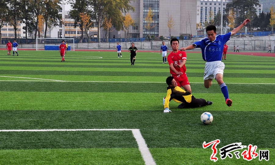 天天天水網(wǎng) 記者何永德 10月26日下午,天水三思足球俱樂部代表隊的隊員和天水天宇足球俱樂部代表隊的隊員正在甘肅省林業(yè)職業(yè)技術(shù)學(xué)院的綠蔭場上進(jìn)行激烈的比賽,當(dāng)日參加2013年天水“福順”杯業(yè)余足球聯(lián)賽的七支代表隊全部亮相,并進(jìn)行完首輪比賽。