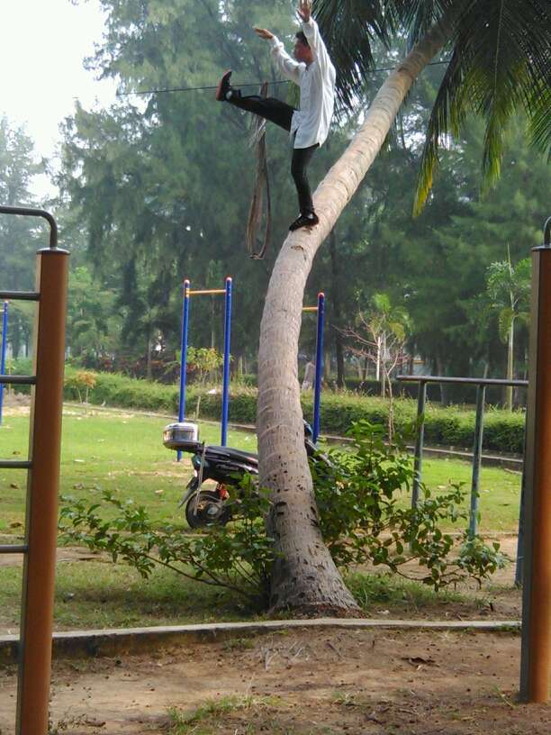 “神人”椰子樹上練功