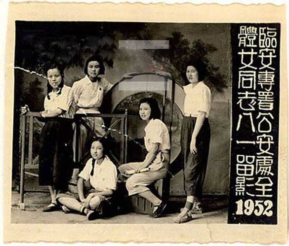 ????這張是是浙江省臨安專署公安處全體女同志1952年合影照片,照片中五名南國(guó)青春少女著便裝,素雅飄逸。