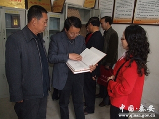 ??? 10月29日至30日,天水市檔案局副局長趙旭耀一行在秦安縣委副書記裴貴軍及縣檔案局負責人的陪同下,對檔案工作“千村百鄉(xiāng)”示范工程進行了驗收,對省特級創(chuàng)建單位進行了預驗,并對“雙聯(lián)”建檔、檔案工作數(shù)字化、重點檔案搶救保護、珍貴歷史檔案征集、《檔案法》執(zhí)法檢查等工作進行了全面考核。