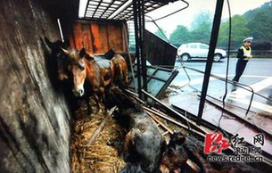| 運馬貨車高速上側(cè)翻 警察開警車追馬 | |