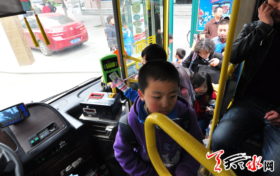 11月8日11時(shí)55分4路公交車靠近迎賓館站點(diǎn),有許多放學(xué)的學(xué)生和家長(zhǎng)及下班的人們向車上擠進(jìn)