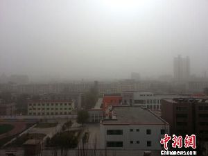 ????圖為連日來浮塵圍困中的酒泉市區(qū)。 楊慶華 攝