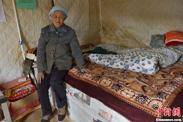 ????11月14日,記者走訪岷縣漳縣6.6級地震重災區(qū)永光村,當?shù)孛癖娙N方式“溫暖”過冬:臨時棉帳篷外裹上稻草,披上篷布,屋內支上火爐和土炕;活動板房里搭建成簡易的家;有些民眾已經(jīng)蓋起了新屋,把帳篷搭在屋子里防風避雨。三種過冬方式都能保證室內溫度在20攝氏度以上。圖為李改花,今年68歲,地震后,家中房屋全部倒塌,四人遇難。李改花暫時住在政府搭建的棉帳篷里,在鄉(xiāng)鄰的幫助下,帳篷里搭起了土炕。老人說:“這個冬天不會冷了”。閆雅琪 攝