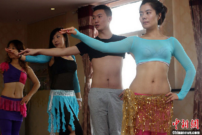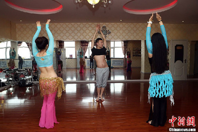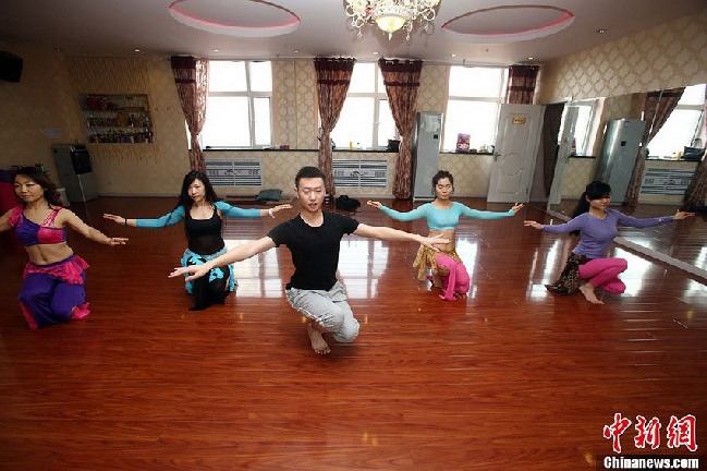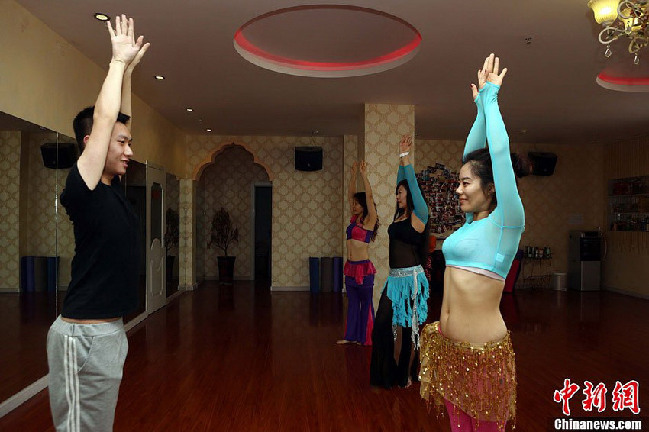 11月15日,在山西太原一家肚皮舞女子健身主題會(huì),女學(xué)員們跟隨著一位“90后”“90后”的男教練有節(jié)奏地翩翩起舞,年輕的男教練舞姿優(yōu)雅、性感、嫵媚,表情中洋溢著快樂與自信。(張?jiān)疲?/p>