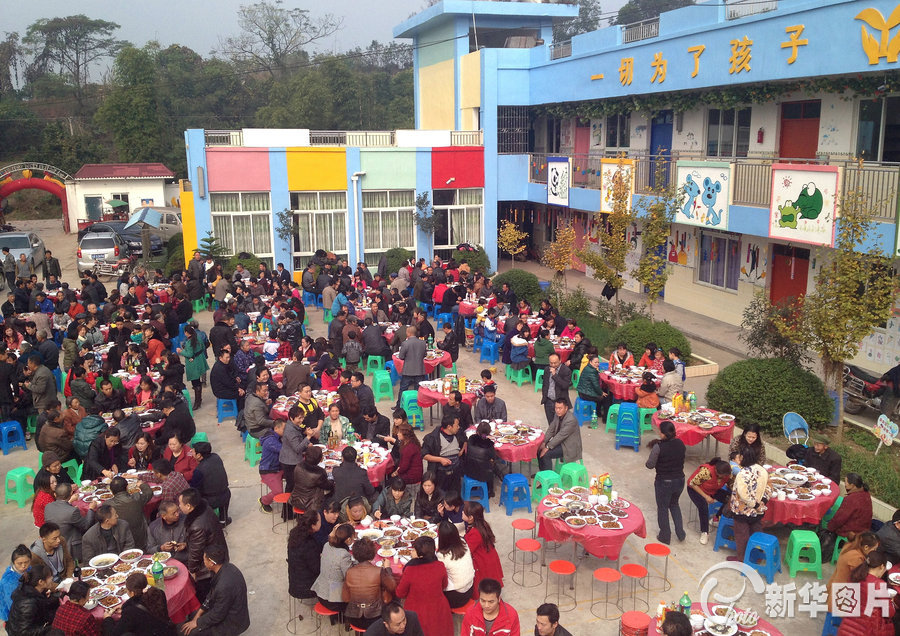 ????昨日是星期二,但金堂縣云合鎮(zhèn)中心幼兒園的100多個(gè)孩子都沒有上學(xué)。不過,沒有了孩子們的幼兒園卻比平時(shí)更加熱鬧:一大早,鍋灶就架起來了,桌椅也擺好了,門口的鞭炮也鋪好了。臨近中午時(shí),幼兒園門口更是人聲鼎沸,賓朋陸續(xù)趕來,一片喜氣洋洋。