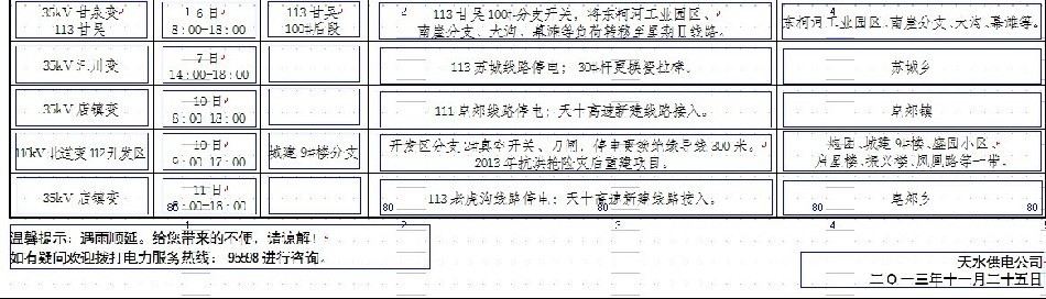 天水供電公司二0一三年十二月份停電檢修計(jì)劃表