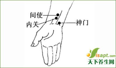 ????按揉內(nèi)關(guān)穴的時候,以穴位處有酸脹感為佳。按摩時,用左手拇指螺紋面按右手內(nèi)關(guān)穴,右手拇指螺紋面按左手內(nèi)關(guān)穴,交替進行,一般每次按揉2~3分鐘。