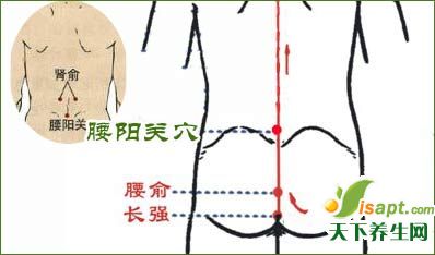 ????顧名思義,腰陽關(guān)穴位于腰部,在背部后正中線第4腰椎棘突下凹陷處,是治療腰部疾病的常用穴位。腰部不適者可趴在床上,用熱毛巾在腰陽關(guān)穴熱敷20~30分鐘?;蜃層H友幫忙按摩腰陽關(guān)穴,每次按揉3~10分鐘,有助于改善腰部疼痛的癥狀。