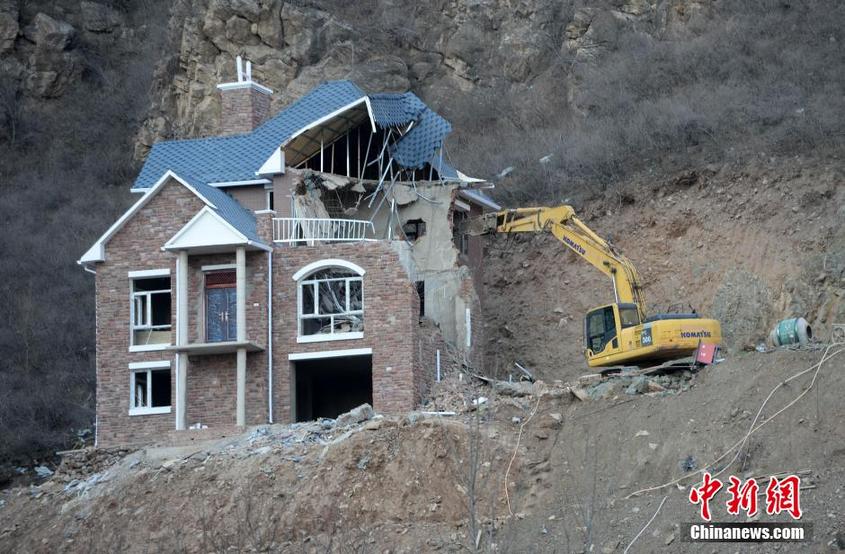 ????11月25日,工人在昌平區(qū)南口鎮(zhèn)虎峪村拆除虎峪自然風景區(qū)內(nèi)的“小產(chǎn)權(quán)別墅”。當日,北京對多處“小產(chǎn)權(quán)房”項目進行拆除。據(jù)介紹,北京將在近期對全市的小產(chǎn)權(quán)房開展一次集中排查,對新增、新建的“小產(chǎn)權(quán)房”項目進行嚴厲打擊,尤其是對違反規(guī)劃,占用耕地、基本農(nóng)田的項目堅決予以拆除。此前,北京已清理認定83個“小產(chǎn)權(quán)房”項目,涉及土地面積5000畝。中新社發(fā) 何笑顏 攝