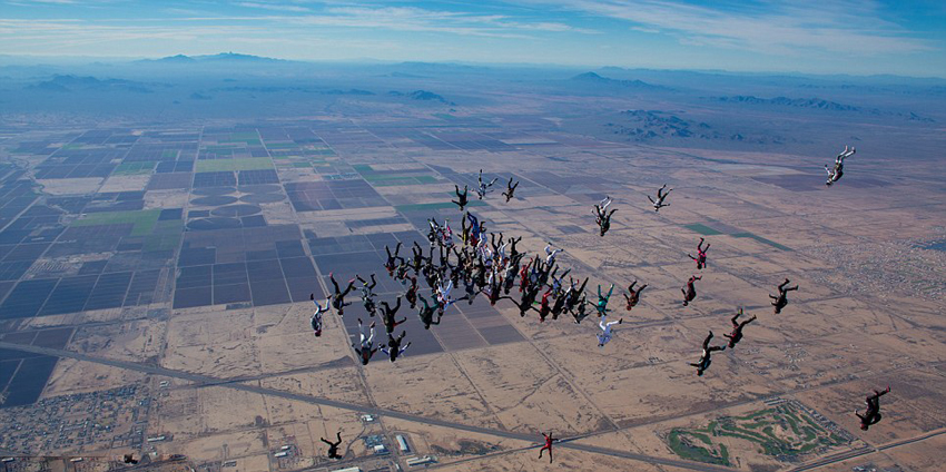 ????近日,來自世界各地的65名女性齊聚美國亞利桑那州埃洛伊農(nóng)場,參加世界級高空垂直跳傘比賽。此次參賽女性的數(shù)量,打破了2010年由41名女性參賽者創(chuàng)下的記錄。在經(jīng)過12次試跳后,這項最新的世界記錄成功獲得國際航空聯(lián)合會的認可。